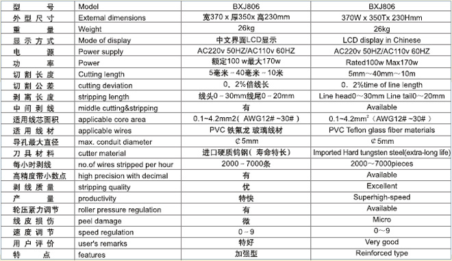 | BXJ-806 加強型電腦剝線機 | 當(dāng)前位置:首頁 > 產(chǎn)品展示 > 自動電腦剝線機 |